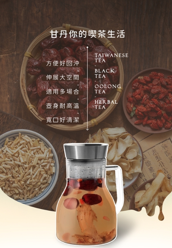 .材質:甘丹茶壺-304不銹鋼、高硼矽耐熱玻璃、食品級矽膠墊圈
