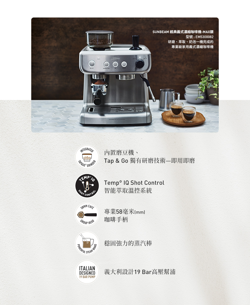 咖啡機消耗功率:1140W;磨豆機消耗功率:120W